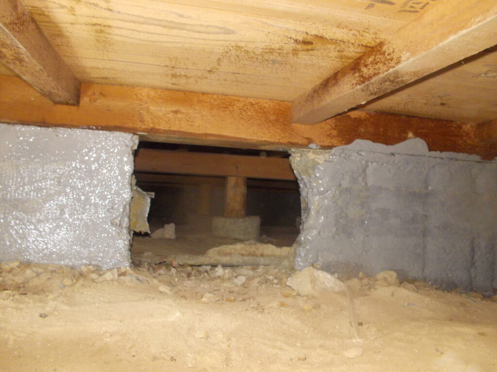 床下点検の際、住宅基礎に構造クラック(貫通ひび割れ)が確認されました。